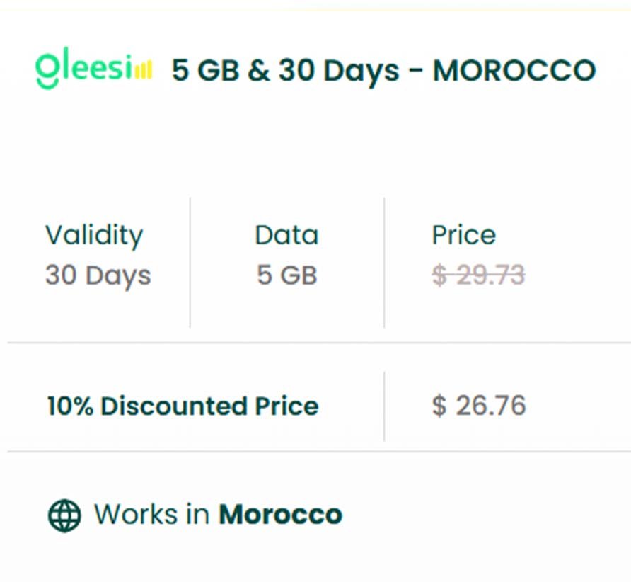 You should stay in touch whether it is a tourist trip, a business one, or the one of the cultural exploration. Gleesim is the best option of eSIM in Morocco Morocco digital substitute of SIM card without attempts to pick it up physically and without having to pay a roaming fee. Get seamless access throughout the best cities and the most distant desert destinations in Morocco. Constant communication with good local networks will be possible without entering a store. Gleesim has an eSIM to Morocco, meaning your mobile phone will be ready to navigate all over the country, with messages, and streaming, and no glitches.