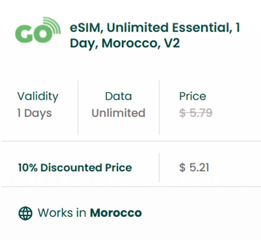 Select one of our convenient and traveler-oriented Morocco eSIM deals, which have been designed to fit any travel destination, be it a weekend getaway or more than a month of travel adventures.
