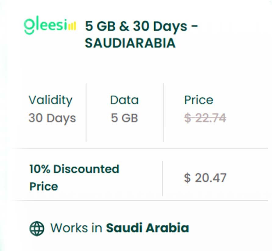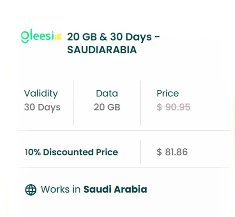 Visit Gleesim and pick an suitable plan of travel eSIM Saudi to suit your itinerary.