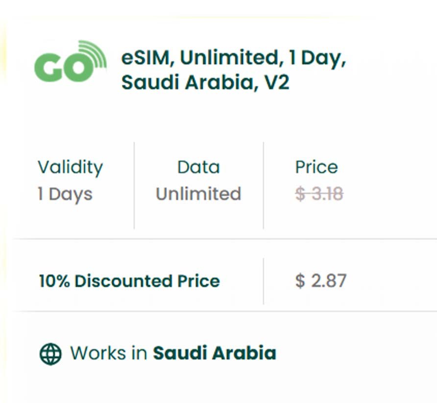 Select from a variety of eSIM Saudi Arabia plans; depending on your travel needs.
